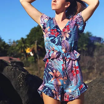 Our gorgeous Crystal Romper with its cap sleeves and fluttery ruffles is a one and done ensemble that’s shaped to perfection. Front buttons and an adjustable waist tie makes slipping in and out of this romper a breeze. Keep it casual in the Crystal with nude sandals and a sunhat for a coffee date, or turn it up in brown booties and an over-sized shoulder bag for an evening soiree.