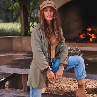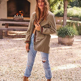 From the Australian designer Jaase comes this effortlessly boho jacket. With its embroidered detailing and fringe hem this jacket screams the chilled relaxed boho vibe. Perfect for festivals, camping as well as those summer nights and autumn/spring walks. This jacket really is suitable for all seasons and occasions and just gives off the right vibe.