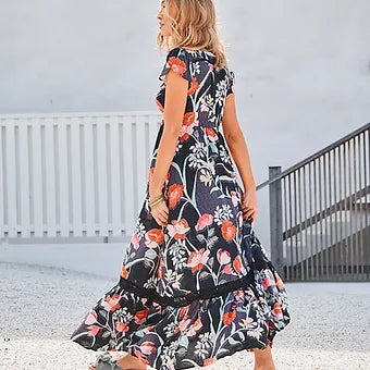 From the Australian Designer Jaase comes the Merida Print Lindsay Maxi. An array of floral print with poppy flowers this midi length dress has a buttoned bodice and asymmetrical multi layered hemline. Oozing boho chic and great vibe this dress would look good anywhere.