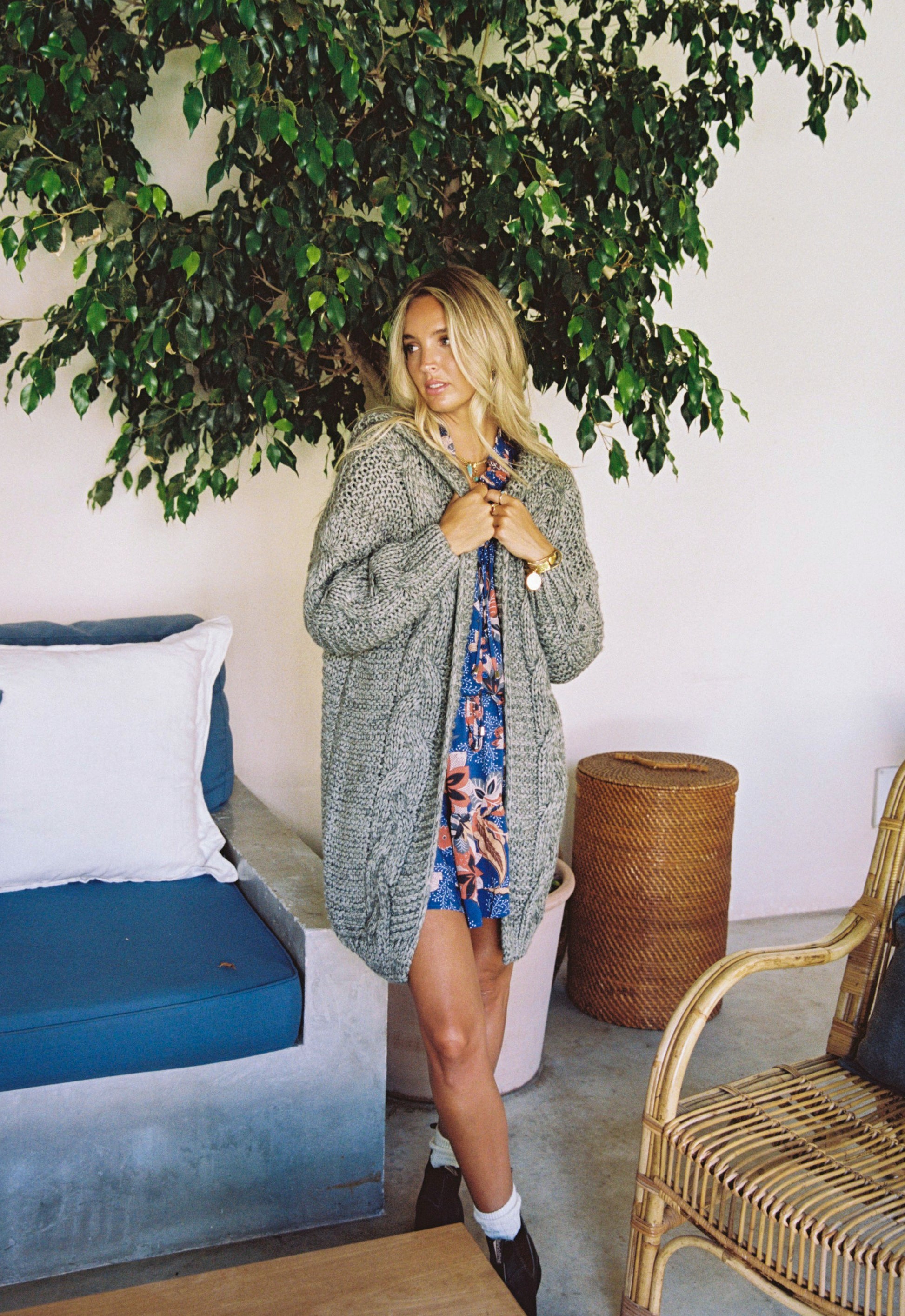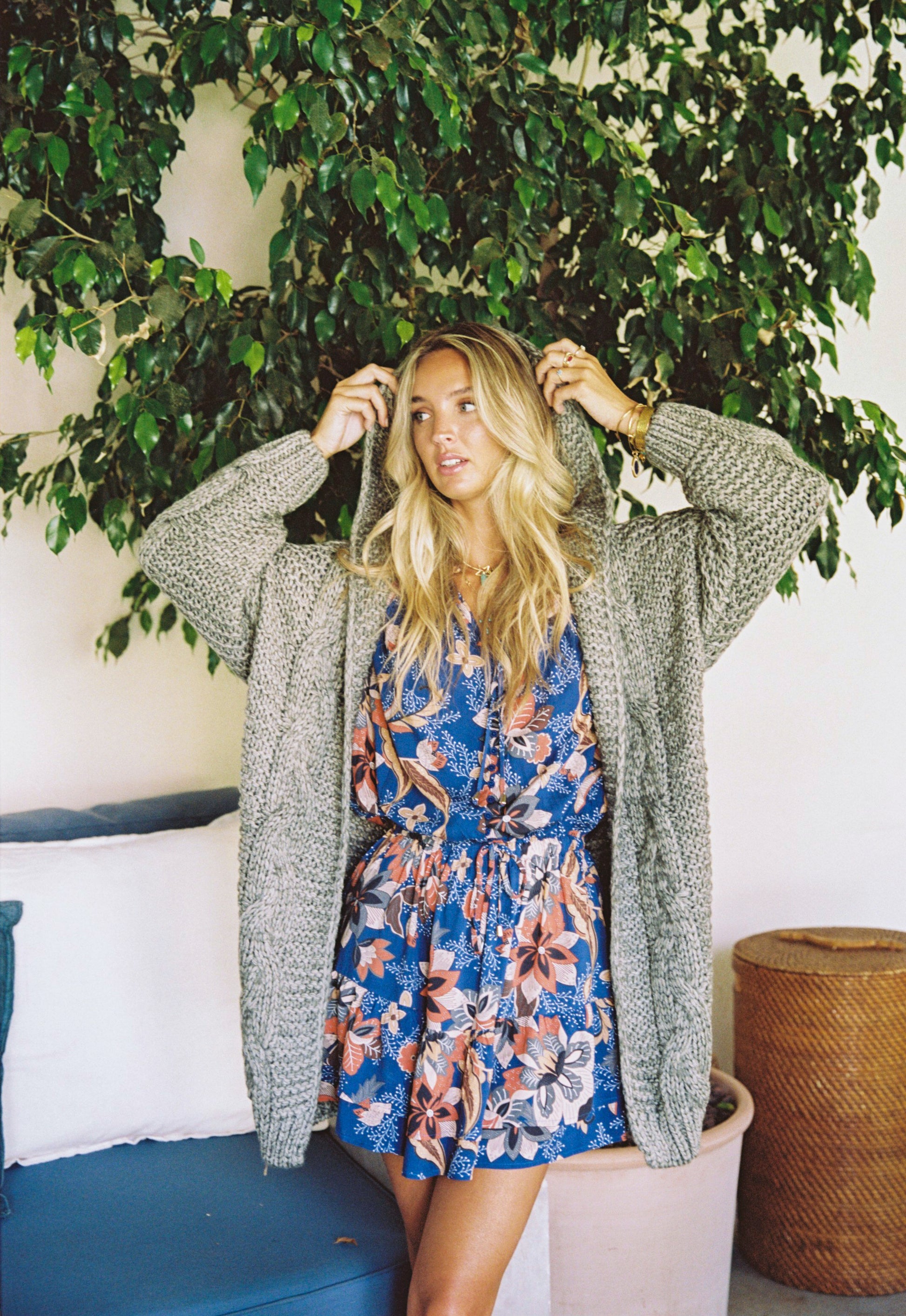 From the Australian label Jaase is this cozy and luxuriously soft hooded stone knit. A stunning chunky knit cardi that is chilled, relaxed and pefect for any wardrobe. Sitting mid thigh length, with a beautiful crochet design this cardigan is all boho and you can guarantee it will become your new go to. This cable knit cardigan has the added bonus of a hood and really is boho at its best. A boho vintage look that oozes good vibes and can be worn over anything. Perfect for layering and adding a little cosy hippie style! The ultimate in boho dressing.