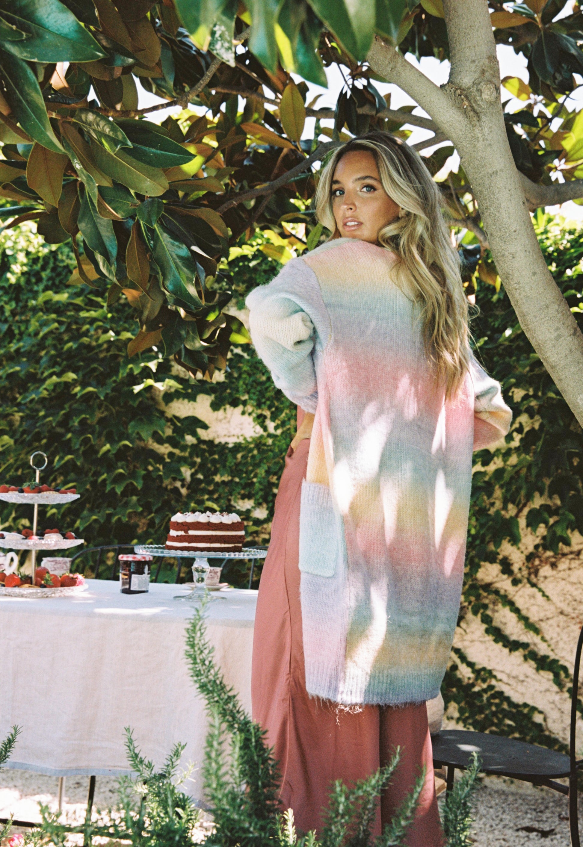 From the Australian label Jaase is the Sweet Lily Knit. A long cardigan in different pastel shades with a soft touch. The cardigan has no closure and falls open nonchalantly. A wondefully warm and soft cardigan- Zero Itching! The cardigan has pockets on the sides and has rainbow colours.