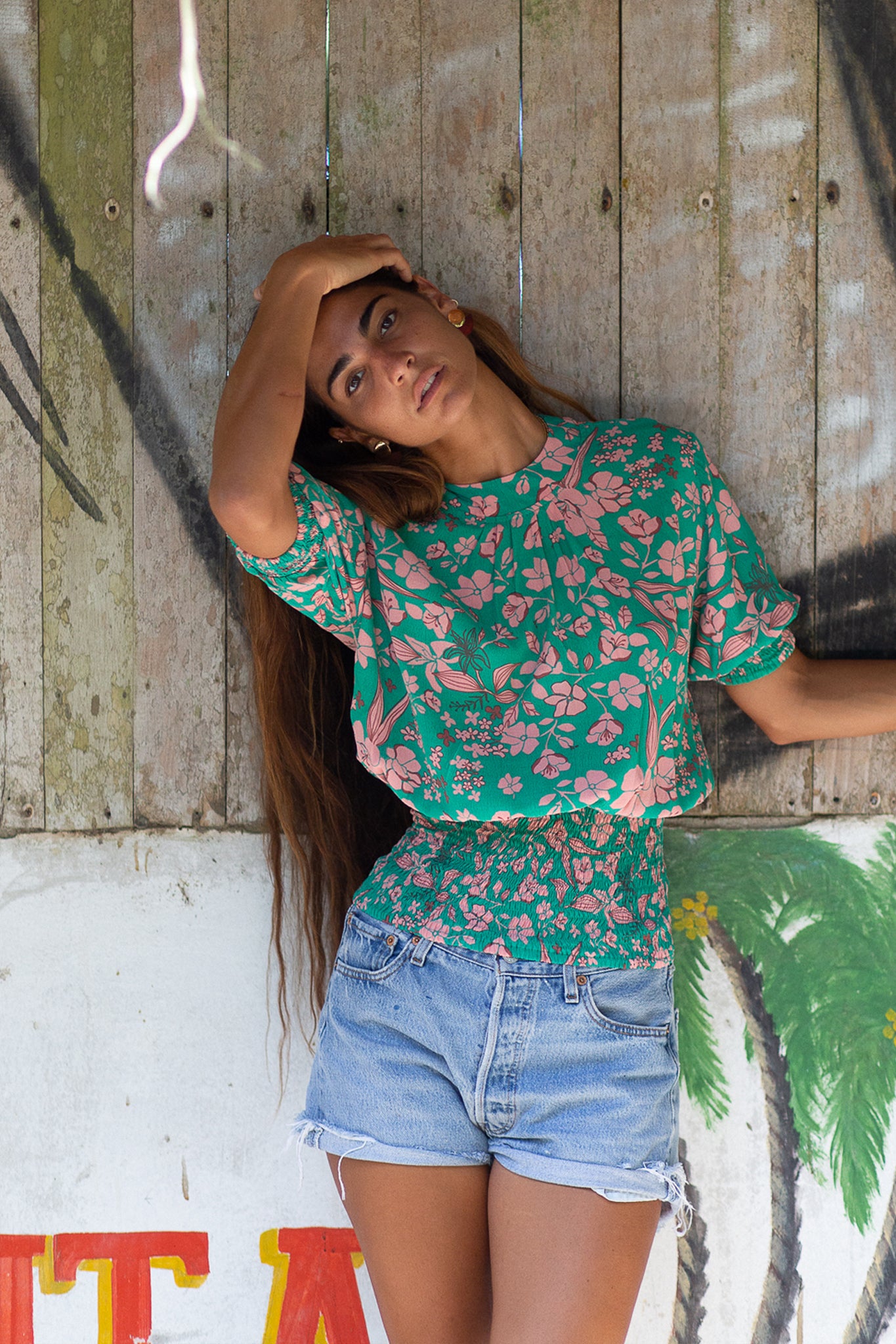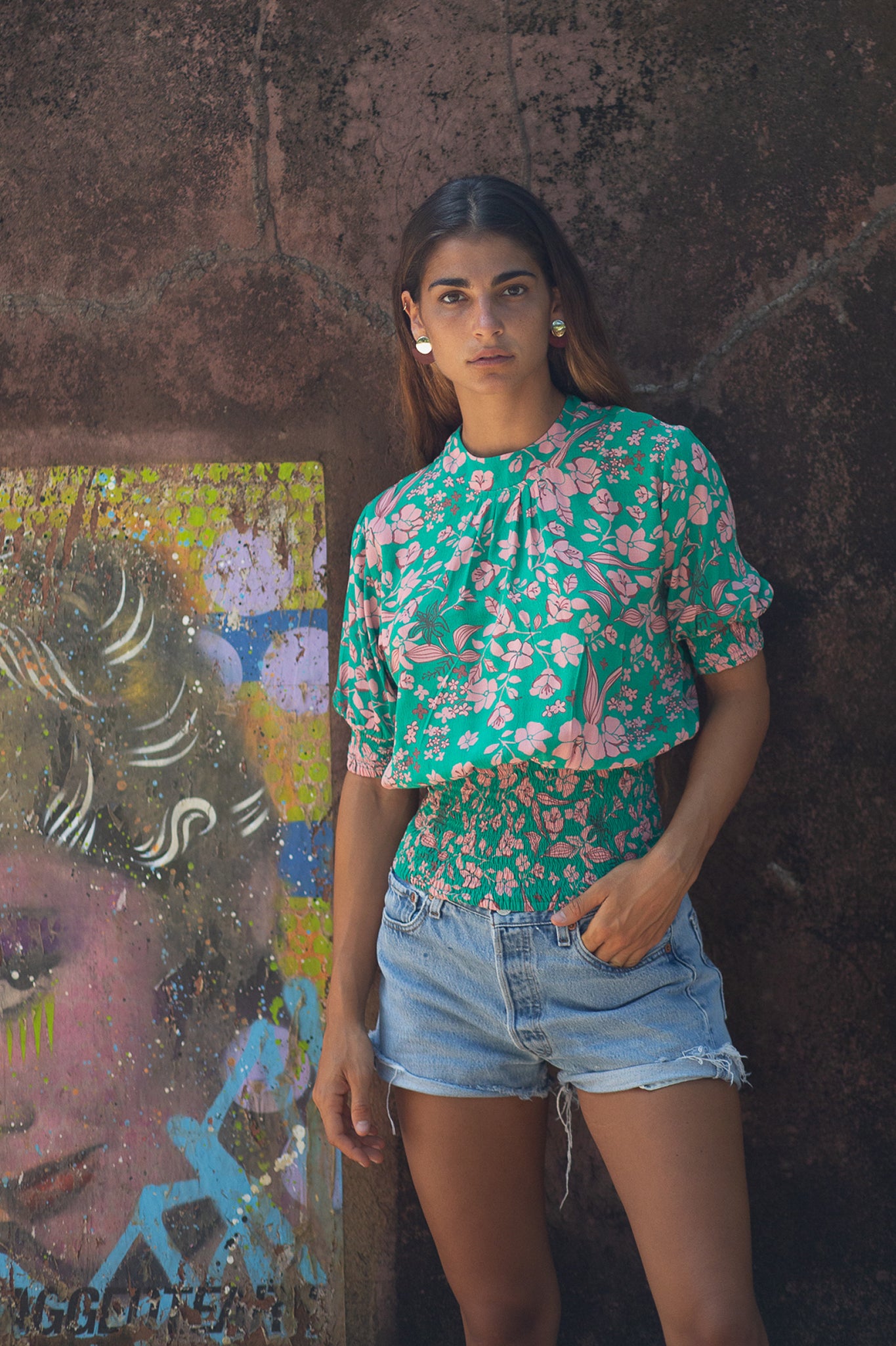 This top is ultra romantic. Made from floral-print or solid color viscose, it has elegant blouson sleeves, a sweetheart neckline and a smock waist. Pair yours with jeans for al fresco brunch dates.